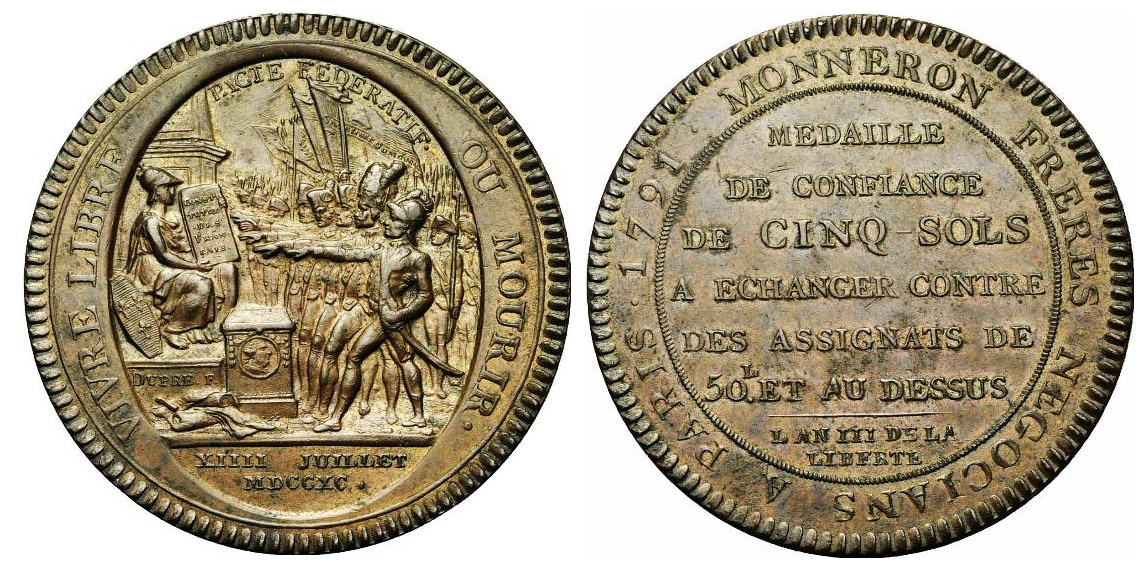 Serment du roi Ces Monneron qui sont en frappe médaille sont des médailles de collection. Ils sont généralement en très bon état.