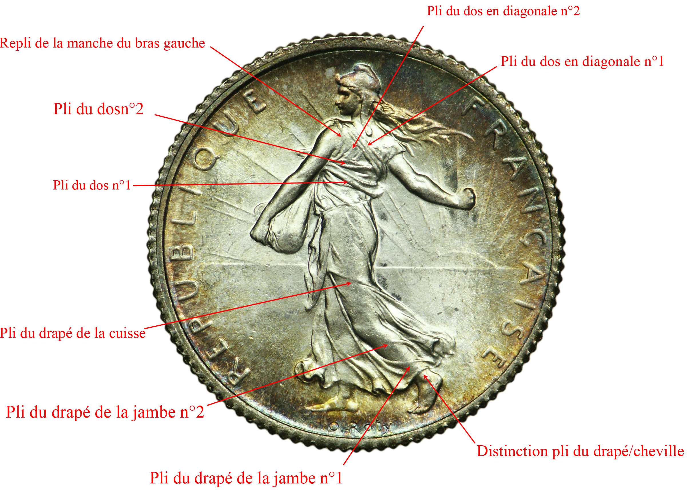 confondre avec une usure du brillant de frappe avec un pli du drapé mal