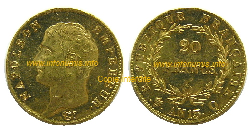 légende "Empire français" sur les monnaies.
