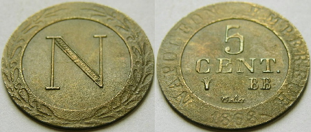 à 1813). Le revers est identique aux 5 "CENTIMEN"