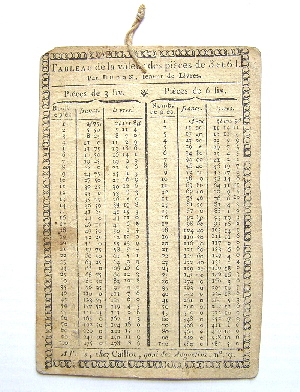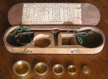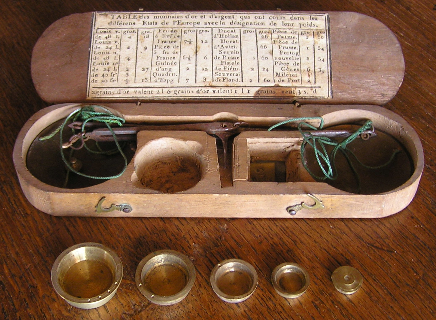 couvercle de la boite de leur trébuchet une "Table des Monnaies".