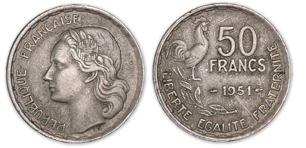 futures pièces de 1 "Nouveau Franc". Sa petite