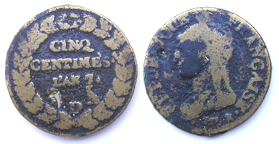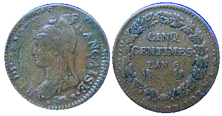 1795, sont frappées les premières 5ct petit module An4