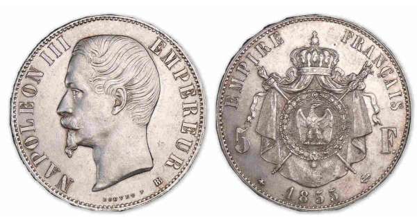 La hausse du cours de l'argent par rapport à celui de l'or obligea l'Etat à réduire considérablement la fabrication des pièces de 5fr de 1857 à 1866 ce qui explique la rareté des millésimes 1861 à 1866 "tête laurée". La découverte de mines d'argent au Nevada en 1866 inverse la tendance et la frappe des pièces de 5fr argent s'accentue énormément à partir de 1867.