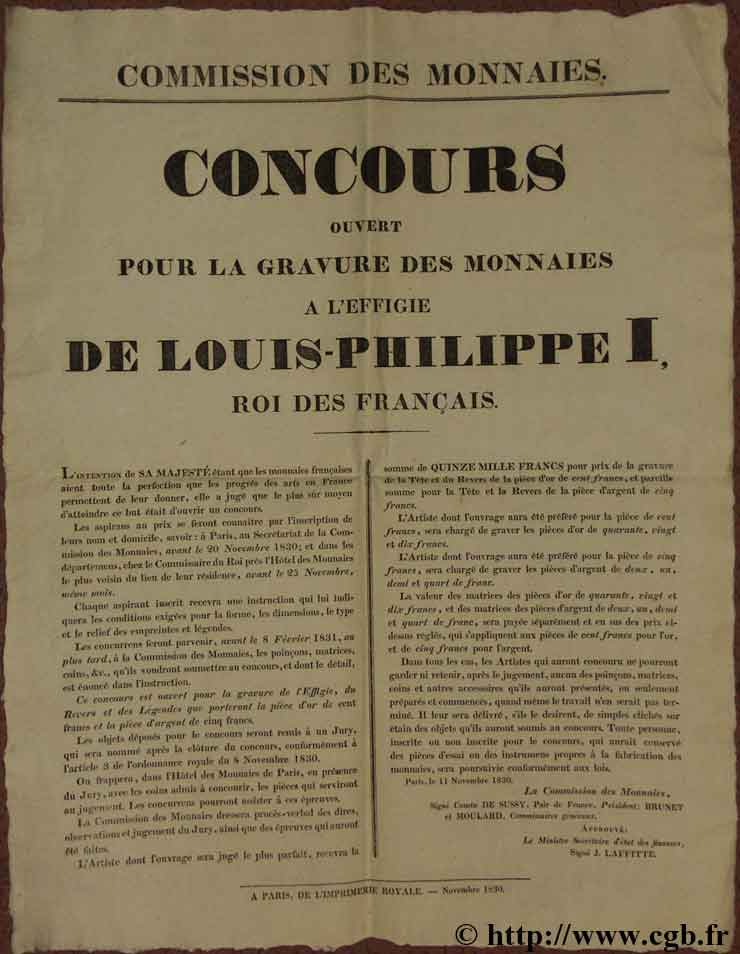 1832 (1fr), 23 oct 1831 (1/2fr), 25 oct