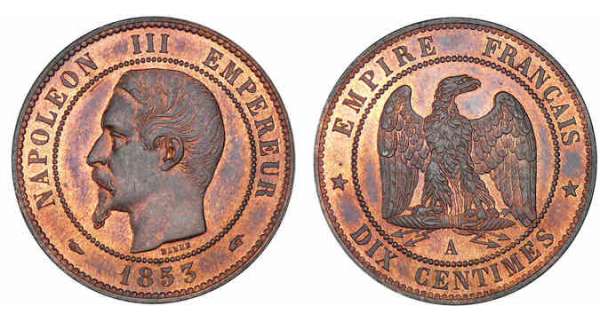 La frappe des 10ct débute le 2 décembre 1852 à Paris, jour de la prise de pouvoir de l'Empereur. Cette fabrication avait été prévue par la Loi du 6 mai 1852 ce qui explique que les coins soient prêts.